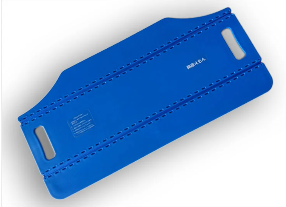 A transfer board designed to assist in moving patients from a bed to a wheelchair.